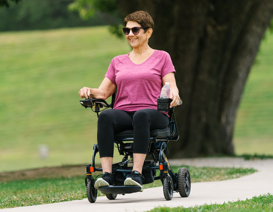 Strong carbon fiber frames makes Jazzy® Carbon Travel Power Chairs a dependable, durable, and lightweight portable mobility solution so you can safely discover your independence and travel worry-free.